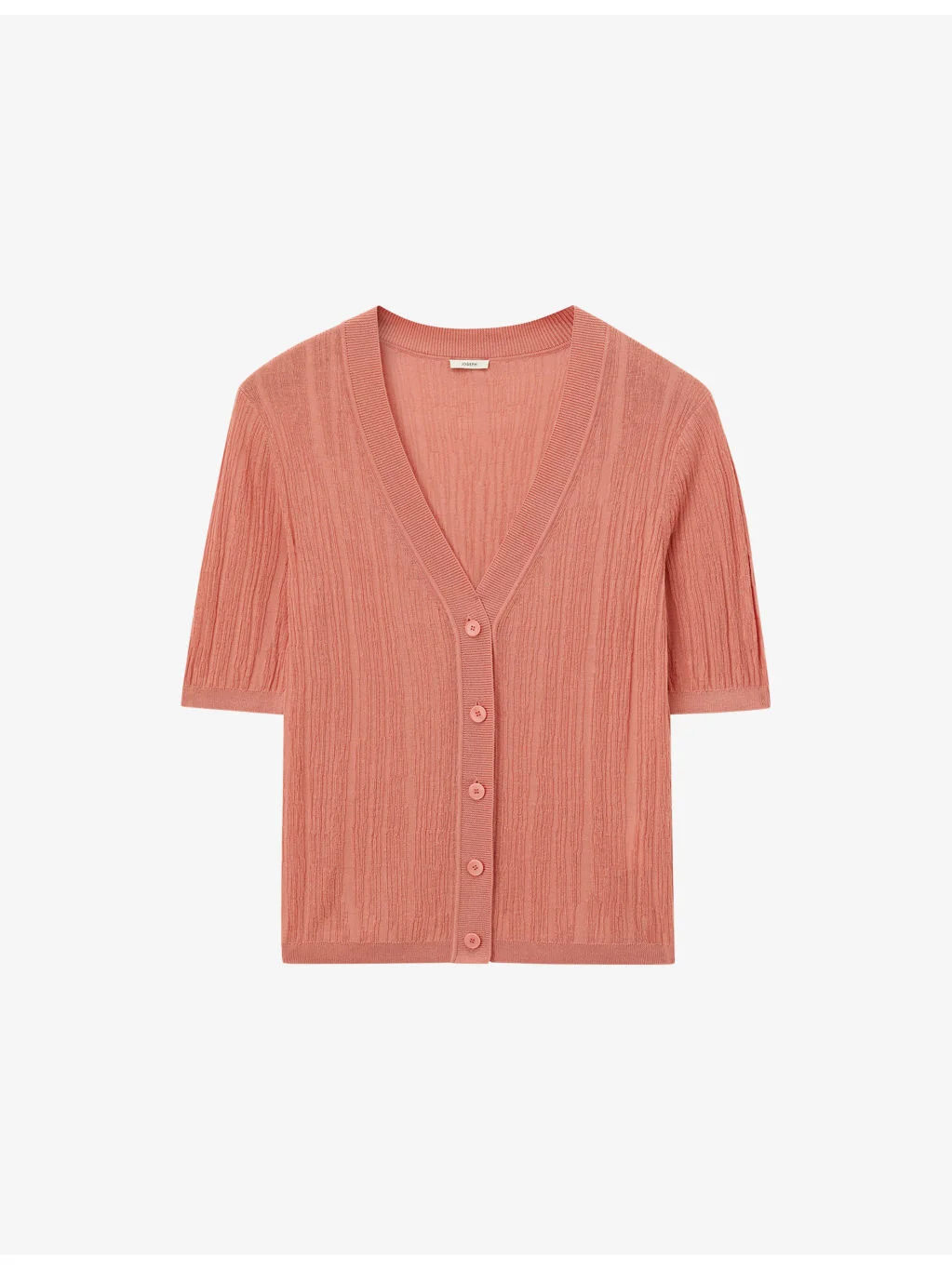 PRODUCT DETAILS - JOSEPH silk and cotton cardigan - 57% silk, 43% cotton - Button fastening - Slim fit, V-neck, short sleeves, ribbed texture - Dry clean - True to size - Lightweight, slight stretch Ref: R04577435