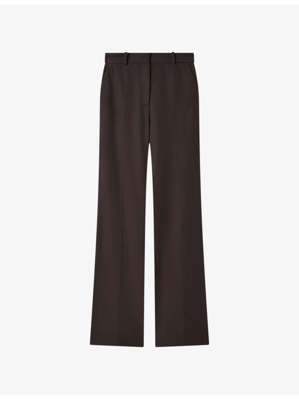 PRODUCT DETAILS - Joseph stretch-woven trousers - 53% viscose, 42% cotton, 5% elastane - Button, hook-and-eye and zip-fly fastening - Regular fit, high rise, flared leg, structured waistband with belt loops, slip pockets at front, pockets at back, pressed centre creases - Dry clean - True to size - Model is 5ft 10in/1.78m and wears a size UK 8 - Midweight, stretchy Ref: R04572262
