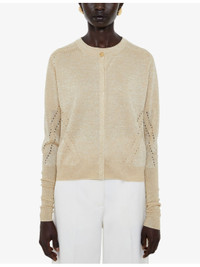 PRODUCT DETAILS - JOSEPH knitted cardigan - 69% viscose, 15% polyester, 15% metallic fibres, 1% polyamide - Button fastening - Regular fit, round-neck, long sleeves, pointelle detailing, ribbed trims, metallic thread - Machine wash mild - True to size - Lightweight, slight stretch Ref: R04545452