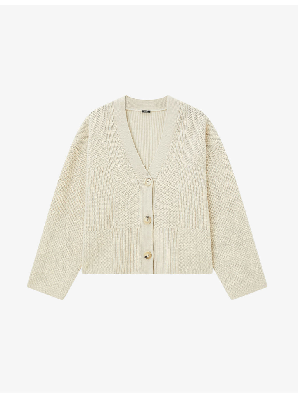 PRODUCT DETAILS - JOSEPH merino-wool cardigan - 100% merino wool - Exposed button fastenings at front - Relaxed fit, V-neck, dropped shoulders, long sleeves, multi-directional square pattern, knitted finish - Machine wash at 30°C - True to size - Lightweight, slight stretch Ref: R04519329