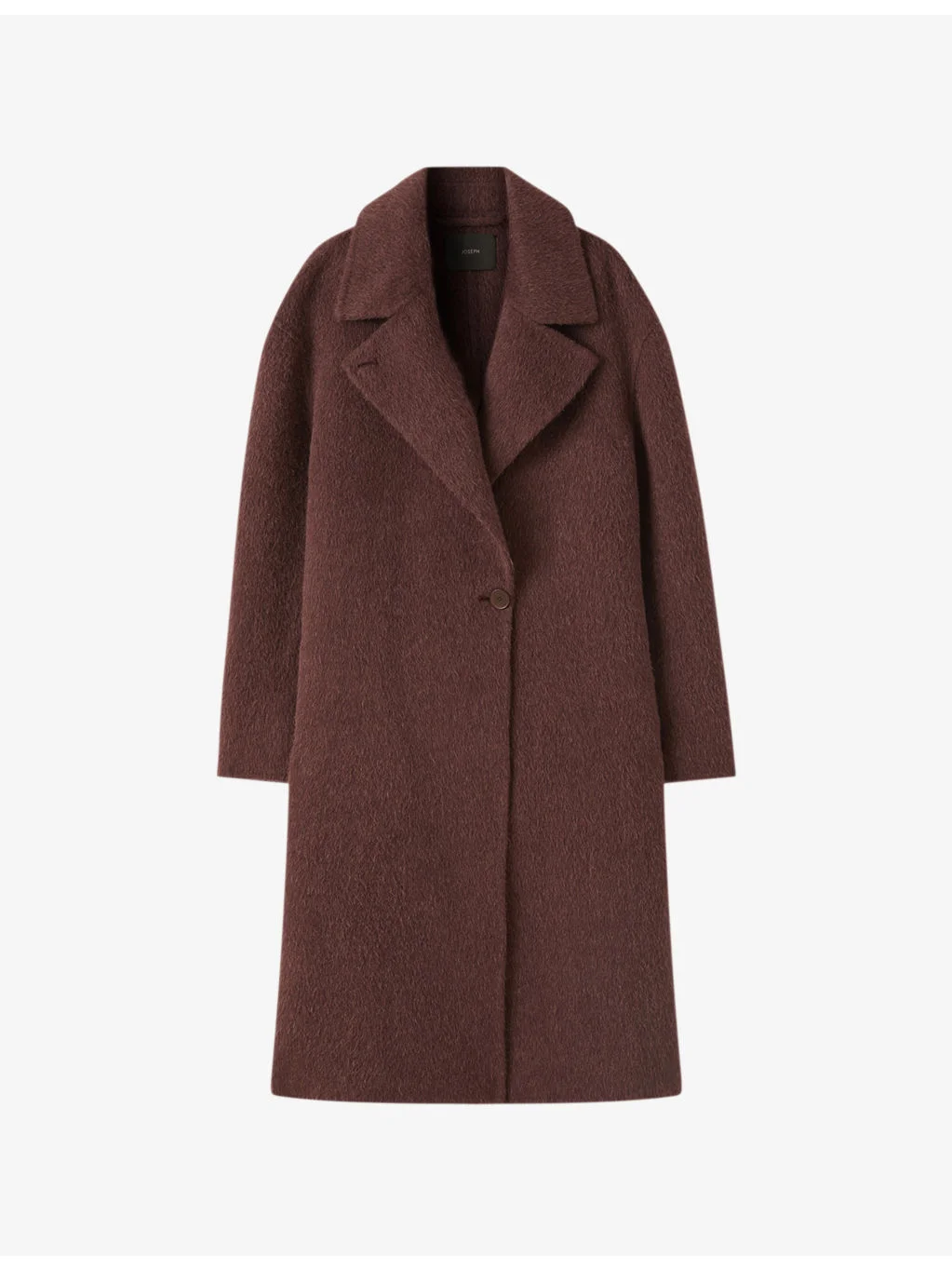 PRODUCT DETAILS - JOSEPH alpaca, wool and silk-blend coat - 50% alpaca, 40% wool, 10% silk - Exposed button fastening at front - Relaxed fit, wide notch lapel, button at lapel, long sleeves, double-breasted front, all-over brushed texture, two side pockets - Dry clean - True to size - Heavyweight, non-stretch Ref: R04534608