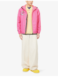 PRODUCT DETAILS - K-Way x Disney waterproof jacket - 100% polyamide - Exposed zip fastening at front - Regular fit, high-neck, fixed adjustable hood, long sleeves, elasticated at cuffs, two zipped pockets at front, brand logo print at front, striped detailing at zip, Disney print at front, cuff and back, waterproof, breathable, water-repellent - Machine wash at 30°C - Model is 6ft 2in/1.88m and wears a size medium - Lightweight, non-stretch Ref: R04557165