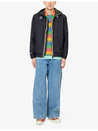 PRODUCT DETAILS - K-Way x Disney waterproof jacket - 100% polyamide - Exposed zip fastening at front - Regular fit, high-neck, fixed adjustable hood, long sleeves, elasticated at cuffs, two zipped pockets at front, brand logo print at front, striped detailing at zip, Disney print at front, cuff and back, waterproof, breathable, water-repellent - Machine wash at 30°C - Model is 6ft 2in/1.88m and wears a size medium - Lightweight, non-stretch Ref: R04557164