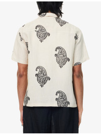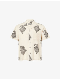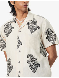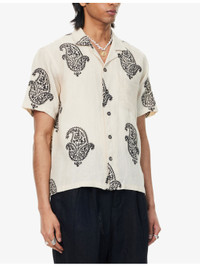 Camp-Collar Paisley-Print Linen Shirt Ecru