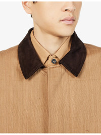 PRODUCT DETAILS - Kartik Research cotton jacket - 100% cotton; contrast 100% suede - Button fastening - Boxy fit, contrast collar, long sleeves, flap pockets at front, embroidered trim at pockets, lined - Dry clean only - Made in India - Model is 6ft 2in/1.88m and wears a size medium - Midweight, non-stretch Ref: R04549642