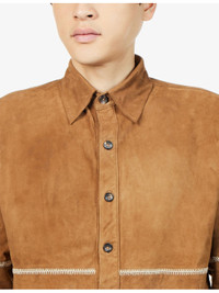 PRODUCT DETAILS - Kartik Research suede shirt - 100% suede - Button fastening - Regular fit, collar, long sleeves, buttoned cuffs, panelled construction, contrast stitching - Specialist leather clean - Made in India - Model is 6ft 2in/1.88m and wears a size medium - Midweight, non-stretch Ref: R04549644