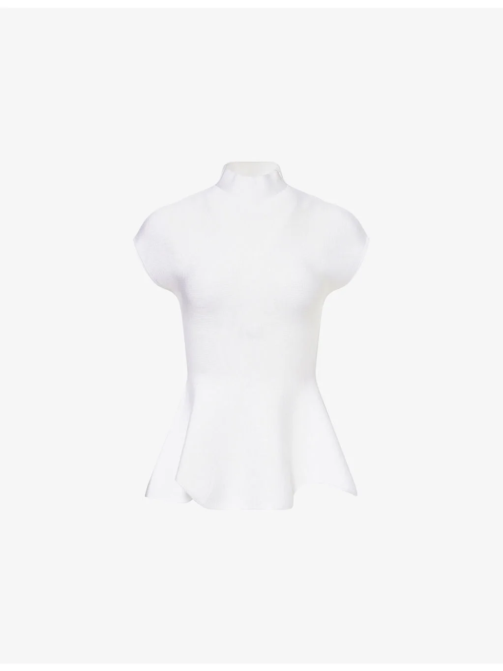 PRODUCT DETAILS - KHAITE knit top - 66% viscose, 31% polyamide, 3% elastane - Concealed zip fastening at collar - Regular fit, stand collar, cap sleeves, flared hem - Dry clean - True to size - Size small: length 24.5in / 62cm - Model is 5ft 10in/1.78m and wears a size small - Midweight, slight stretch Ref: R04605505