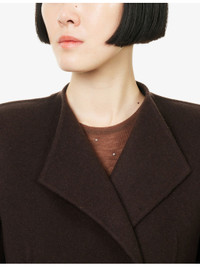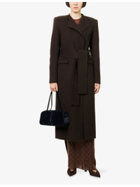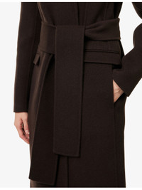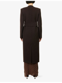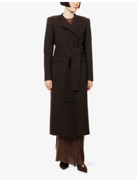 PRODUCT DETAILS - KHAITE wool coat - 100% wool; lining 100% cupro - Relaxed fit, round-neck, padded shoulders, long sleeves, two flap pockets at front, belt loops, detachable belt, brushed, unlined, single vent - Dry clean - Made in Italy - True to size - Size UK 8: length 47in / 120cm - Model is 5ft 10in/1.78m and wears a size UK 8 - Midweight, stretchy Ref: R04534036
