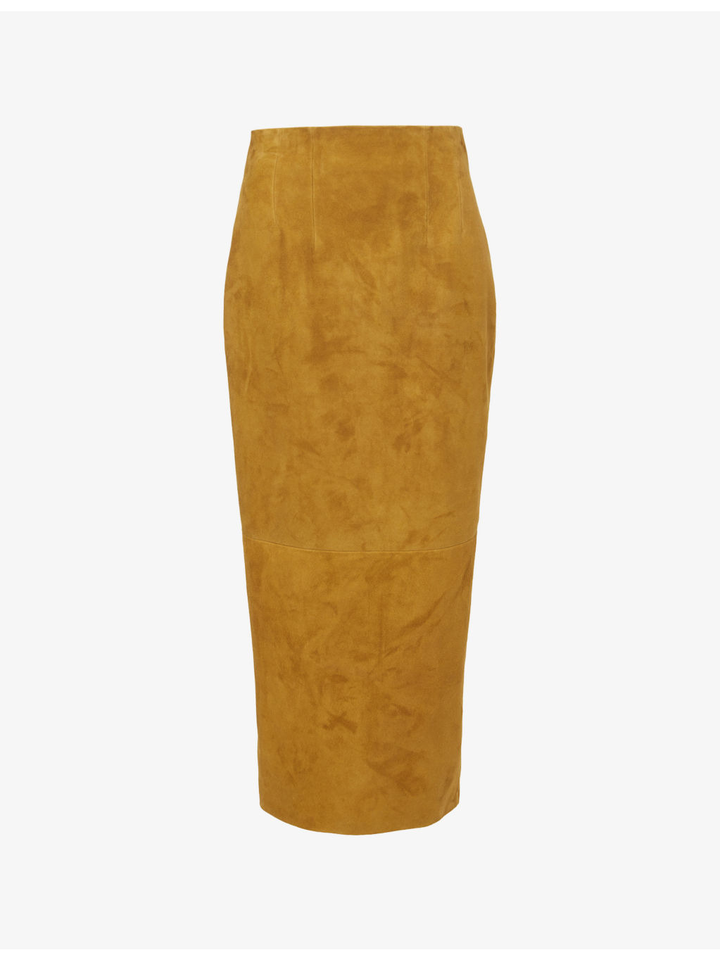 PRODUCT DETAILS - KHAITE suede midi skirt - 100% lamb leather; lining 95% silk, 5% elastane - Concealed zip fastening at back - Regular fit, high-waist, darts at front and back, all-over suede leather, split at back, fully lined - Specialist dry clean - Made in Italy - True to size - Size UK 8: length 38in / 97cm - Model is 5ft 10in/1.78m and wears a size UK 6 - Midweight, non-stretch Ref: R04534041