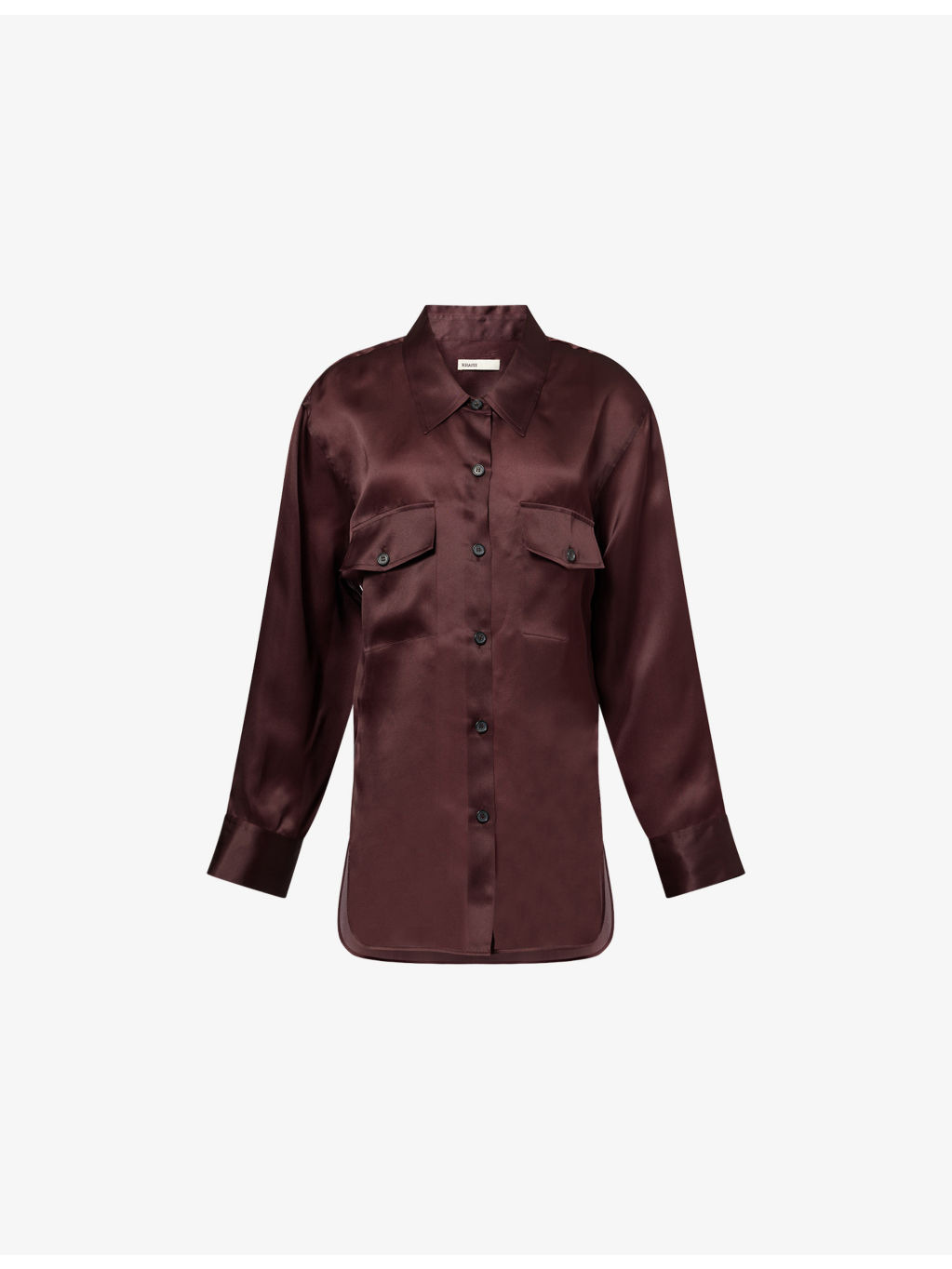 PRODUCT DETAILS - KHAITE silk shirt - 100% silk - Exposed button fastening at front - Spread collar - Buttoned cuffs - Relaxed fit, collar, long sleeves, two buttoned pockets at front, straight yoke at back, split at sides, all-over satin texture - Dry clean - Made in Italy - True to size - Size small: length 30in / 78cm - Model is 5ft 10in/1.78m and wears a size small - Lightweight, stretchy Ref: R04488671