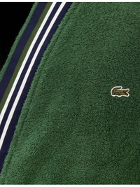 PRODUCT DETAILS - Lacoste organic terry cotton bathrobe - 100% organic cotton - Self-tie fastening - Falls below the knee, tone-on-tone belt, contrasting trim, kimono-style neckline, wide sleeves, side pockets, Lacoste crocodile applique - Machine wash mild Ref: R03818355