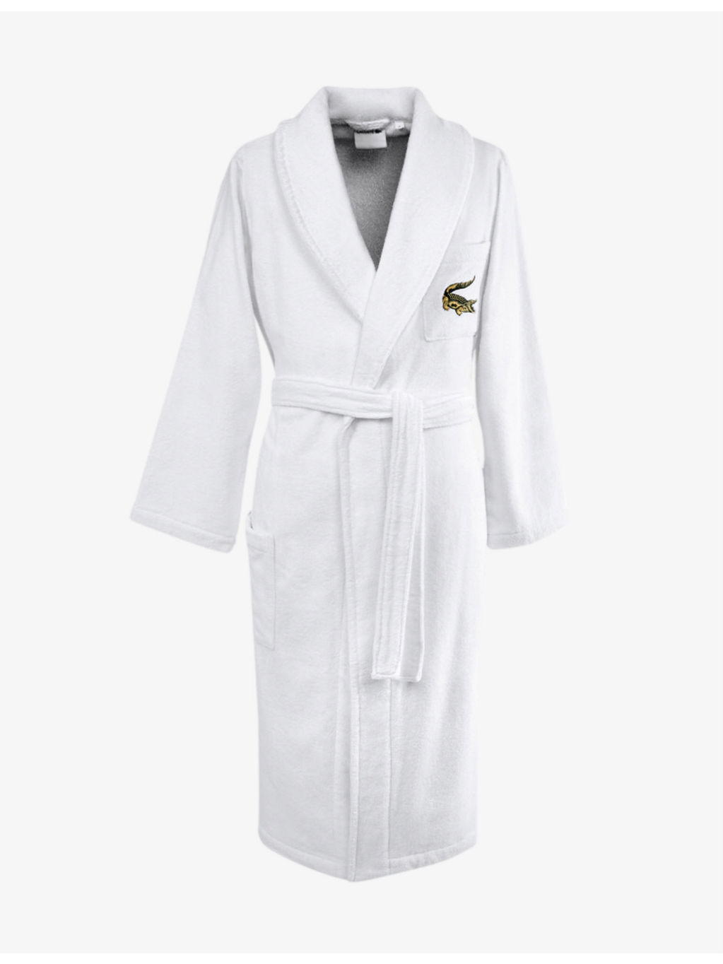 PRODUCT DETAILS - Lacoste cotton dressing gown - 100% cotton - Self-tie fastening - Mid-length, long sleeve, logo embroidered onto the chest, belt loops, self-tie fastening, patch pocket on the chest, V-neck line, straight hem - Machine wash mild - True to size Ref: R03719466