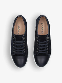 PRODUCT DETAILS - Lanvin suede low-top trainers - 100% suede - Lace-up fastening - Closed round toe, panelled construction, tonal design, tonal laces, branding at tongue, branding at side - Specialist leather clean - Made in UK - Upper: 100% suede - Lining: 100% leather - Sole: 100% rubber Ref: R04255641