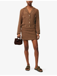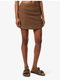 PRODUCT DETAILS - Le Kasha linen mini skirt - 100% linen - Zip fastening - Regular fit, mid-rise, structured waistband, pleated at back, double-layered woven texture - Machine wash cold - True to size - Size small: length 14in / 36cm - Model is 5ft 10in/1.78m and wears a size small - Lightweight, non-stretch Ref: R04464213