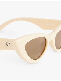 PRODUCT DETAILS - Le Specs plastic sunglasses - Style number: 2452327 - 100% plastic; hardware 100% plastic; lenses 100% polycarbonate - Tinted lenses, durable, impact resistant, 100% UV protection, category 2 - Frame shape: cat eye shape - Lens width: 5.5cm, bridge size: 1.5cm, temple length: 15cm - Wipe with a clean, dry cloth - Case type: Comes with a soft case and cloth Ref: R04351933