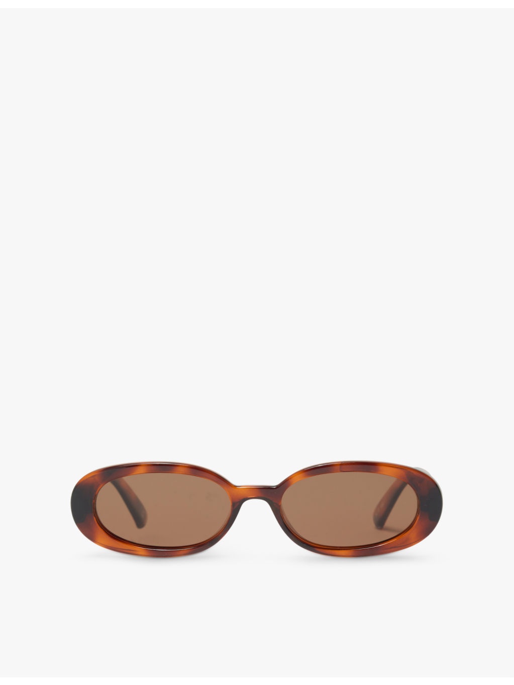 PRODUCT DETAILS - Le Specs polycarbonate sunglasses - Style number: 2452396 - 100% polycarbonate; lenses 100% polycarbonate - Slips on - Tinted lenses, tortoise frame, slimline design, gold-tone hardware, durable, impact resistant, shatterproof, scratch resistant - Frame shape: oval shape - Lens width: 5.5cm, bridge size: 1.5cm, temple length: 14cm - Wipe with a clean, dry cloth - Case type: Comes with a soft case and cloth Ref: R04351936