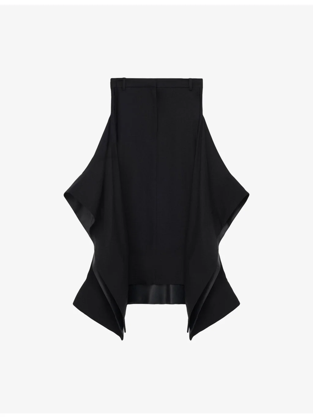 PRODUCT DETAILS - Loewe woven midi skirt - 76.8% viscose, 15% lamb leather, 5% polyester, 3.2% elastane - Concealed zip fastening - Abstract, symmetrical, belt loops, midi length - Dry clean - Made in Italy - True to size - Midweight, non-stretch Ref: R04566965