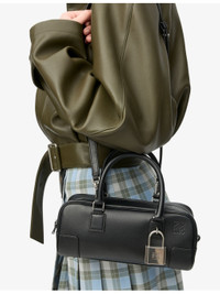 PRODUCT DETAILS - Loewe leather shoulder bag - 100% leather; lining 100% suede - Zip fastening - Elongated shape, detachable and adjustable strap, top handles, internal zipped compartment, internal slip pocket with press stud fastening, Anagram embossed on front, protective metal feet on base, engraved Anagram padlock charm - Height 11cm, width 23cm, depth 910cm, handle drop 10cm, strap length 84.5cm – 112.5cm - Specialist leather clean Ref: R04492600
