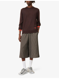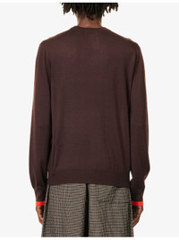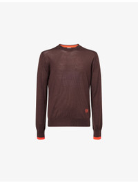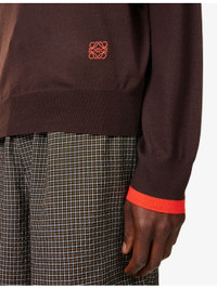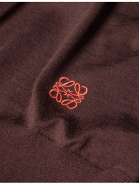 PRODUCT DETAILS - Loewe wool jumper - 100% wool; embroidery 100% polyester - Regular fit, crewneck, long sleeves, striped cuffs, anagram embroidery at front, all-over fine-knit pattern, ribbed trims - Dry clean - Made in Italy - Model is 6ft 2in/1.88m and wears a size medium - Lightweight, stretchy Ref: R04494985