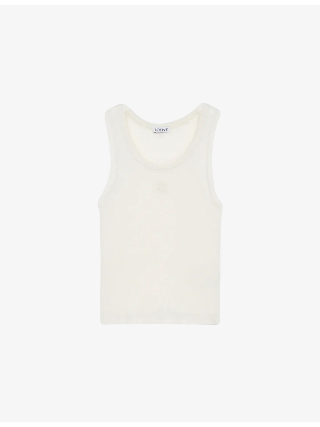 PRODUCT DETAILS - Loewe silk-blend tank top - 95% silk, 5% polyester - Slim fit, round neck, sleeveless, Anagram embroidery at chest, all-over ribbed jersey texture - Hand wash - True to size - Model is 5ft 10in/1.78m and wears a size small - Lightweight, slight stretch Ref: R04448633