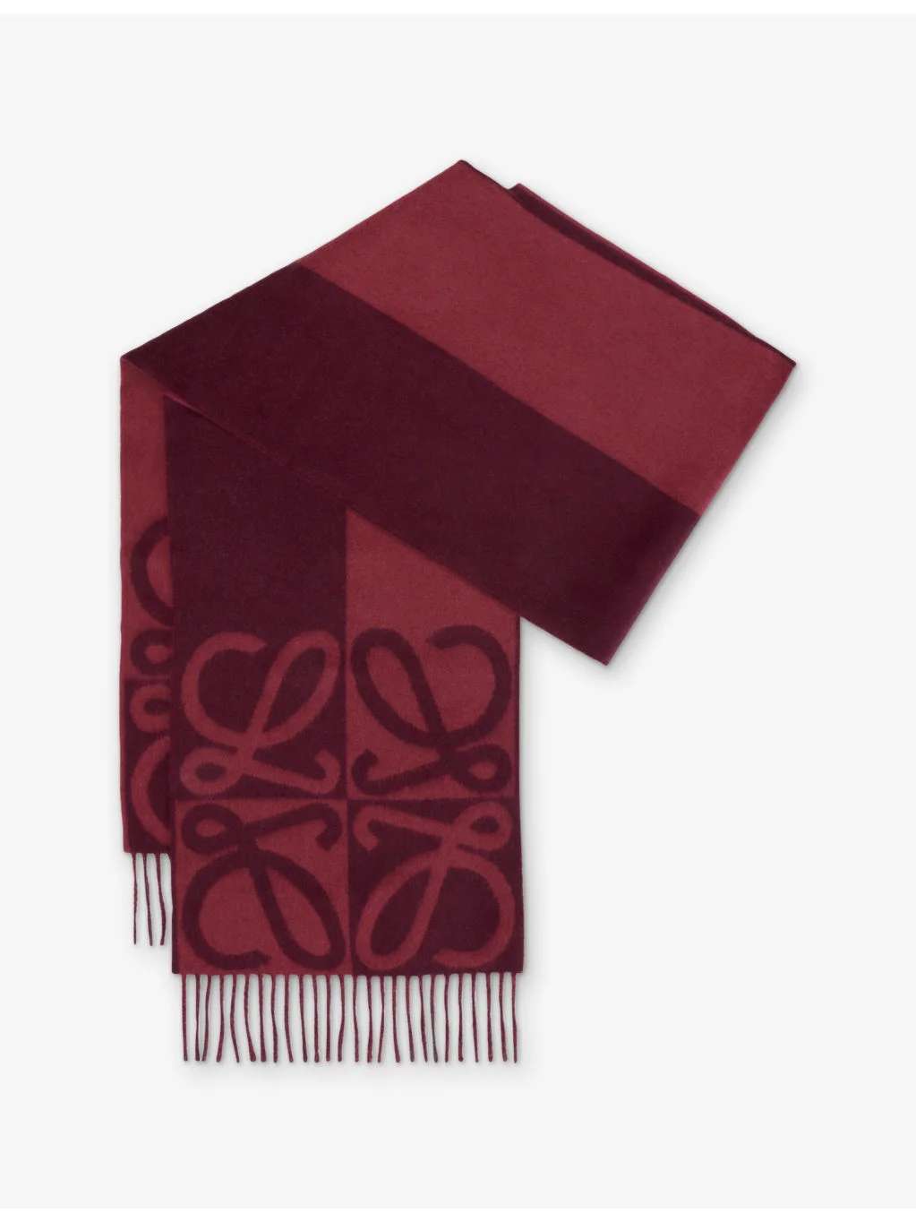 PRODUCT DETAILS - Loewe cashmere and wool scarf - 90% wool, 10% cashmere - Tassel edges, Anagram design, knitted - Length 180cm, width 28cm - Dry clean Ref: R04567211