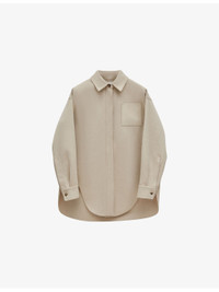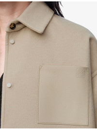 PRODUCT DETAILS - Loewe wool-cashmere blend overshirt - 50% wool, 50% cashmere - Button fastening - Relaxed fit, collar, long sleeves, buttoned cuffs, patch pocket at chest, brand anagram at pocket, brushed texture, curved hem - Dry clean - Model is 5ft 9in/1.75m and wears a size UK 8 - Midweight, non-stretch Ref: R04413425
