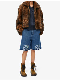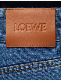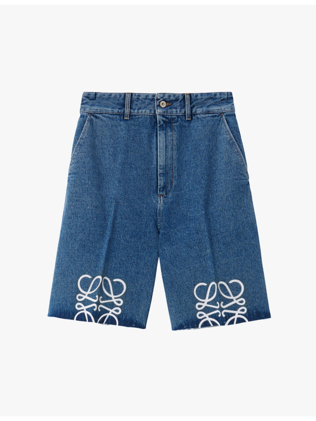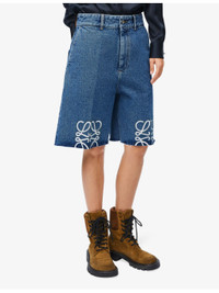 PRODUCT DETAILS - Loewe denim shorts - 95% cotton, 5% leather - Button and zip-fly fastening - Regular fit, high-rise, straight leg, raw-cut hems, belt loops, side pockets, back pockets, leather logo patch - Machine wash mild - True to size - Midweight, non-stretch Ref: R04344533