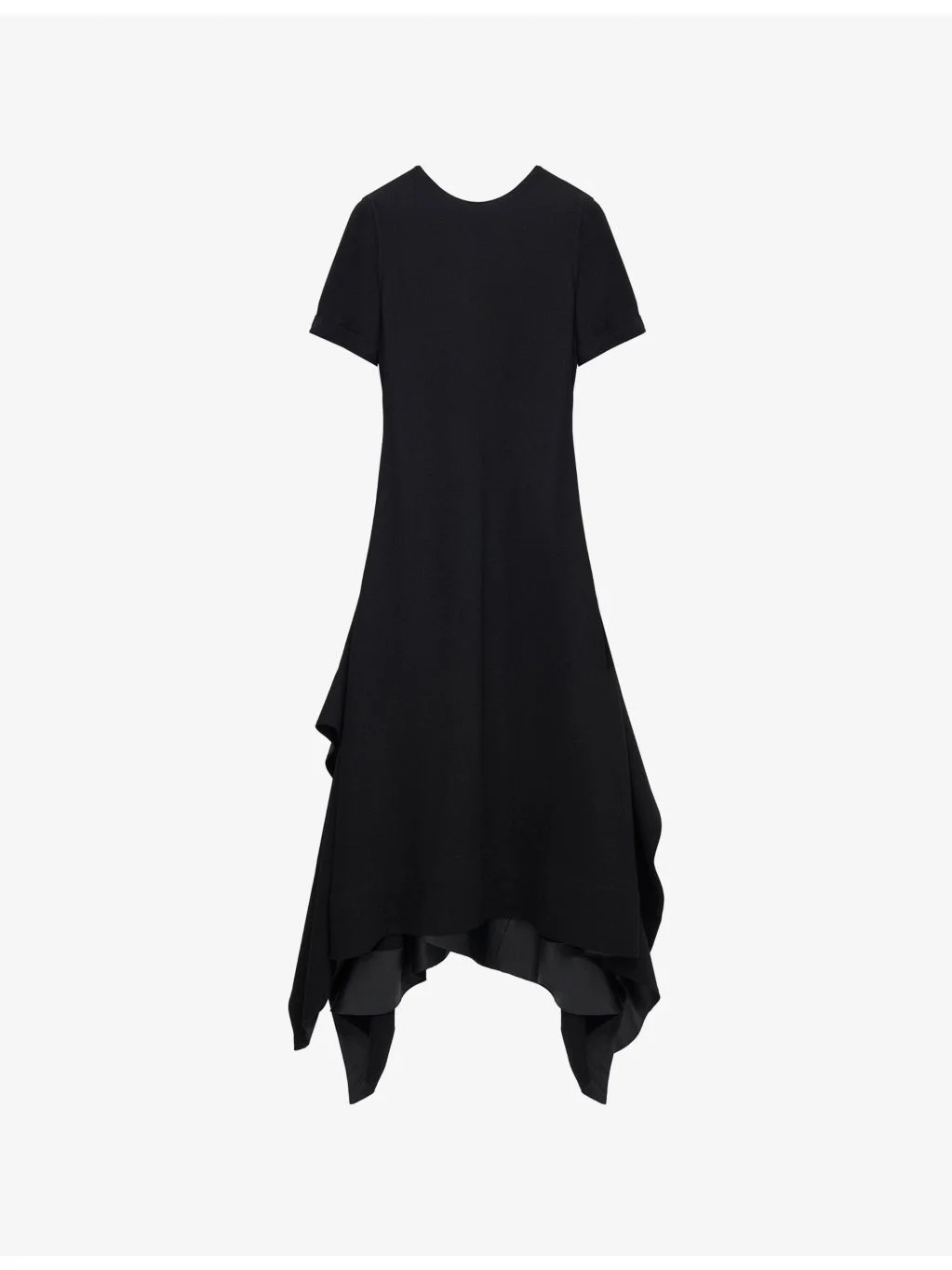 PRODUCT DETAILS - Loewe woven dress - 86.4% viscose, 10% lamb leather, 3.6% elastane - Round neck, short sleeve, asymmetric hem - Dry clean - Made in Italy - True to size - Lightweight, slight stretch Ref: R04566960