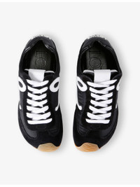PRODUCT DETAILS - Loewe suede and woven low-top trainers - 100% suede; 100% woven - Lace-up fastening - Asymmetric closed toe, contrast sole that extends to toe cap, embroidered Anagram at sides, embossed Anagram at tongue, brand embossed text at heel tab, panelled upper - Specialist leather clean - Made in Italy - Upper: 100% suede; 100% woven - Lining: 100% leather - Sole: 100% synthetic Ref: R04439696