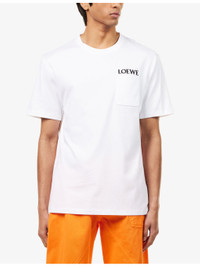 PRODUCT DETAILS - LOEWE cotton-jersey T-shirt - 100% cotton; embroidery 100% polyester; trims 97% cotton, 3% elastane - Relaxed fit, ribbed crewneck, short sleeves, brand embroidery and patch pocket at front - Machine wash at 30°C - Made in Portugal - Model is 6ft 2in/1.88m and wears a size medium - Lightweight, stretchy Ref: R04565738