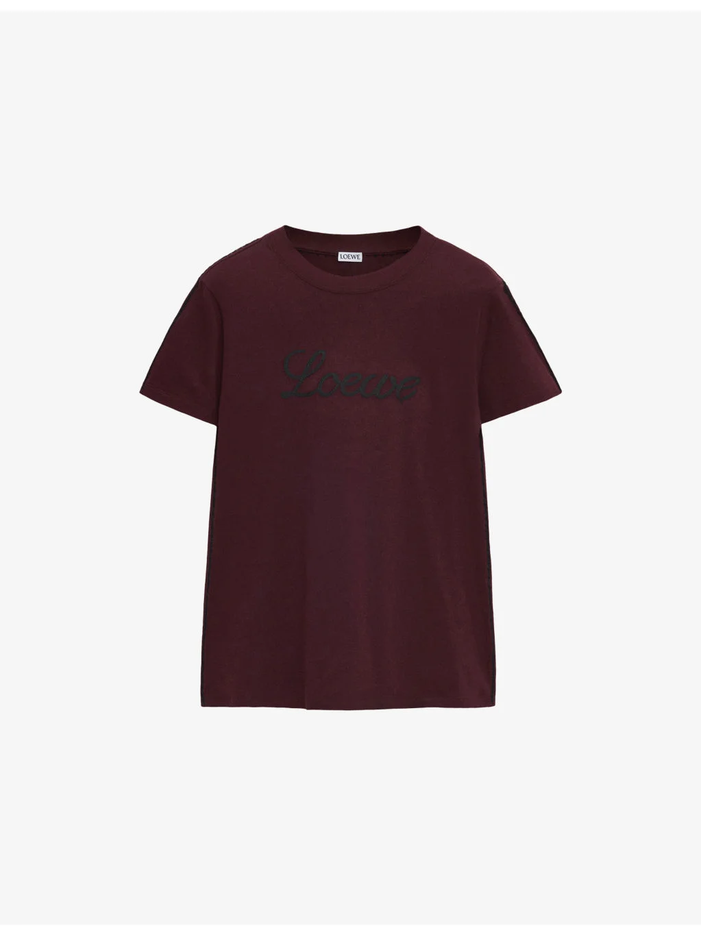 PRODUCT DETAILS - Loewe cotton-jersey T-shirt - 96.95% cotton, 3% polyester, 0.05% elastane - Relaxed fit, round neck, short sleeves, brand print at front, contrast stripe trim, jersey texture - Machine wash at 30°C - Made in Spain - True to size - Lightweight, slight stretch Ref: R04567045