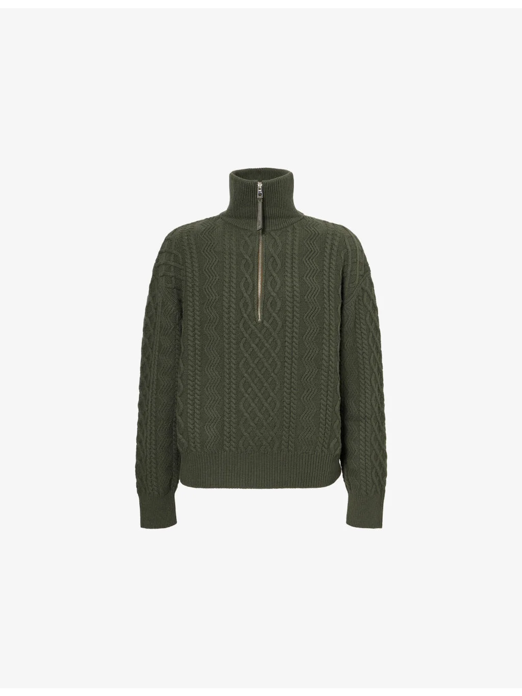 PRODUCT DETAILS - Loewe wool sweater - 100% wool - Zip fastening at front - Funnel neck, long sleeves, quarter zip, all-over cable knit design, ribbed trims - Dry clean - Made in Italy - Model is 6ft 2in/1.88m and wears a size medium - Lightweight, slight stretch Ref: R04522402