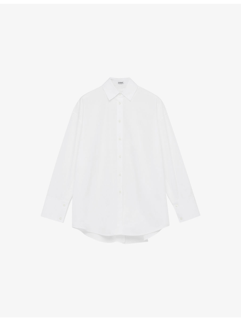 PRODUCT DETAILS - Loewe cotton-blend shirt - 96% cotton, 4% polyester - Button fastening - Cape silhouette, relaxed fit, classic collar, button front fastening, long sleeves, buttoned cuffs, box pleat at back, Anagram embroidery at back - Dry clean - True to size - Lightweight, non-stretch Ref: R04493213