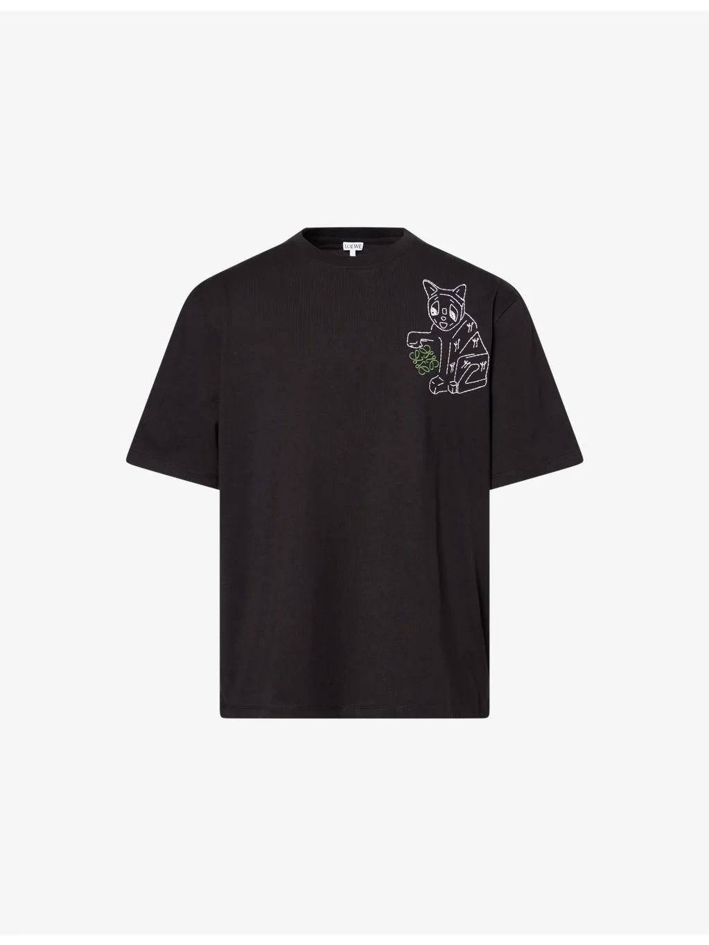 PRODUCT DETAILS - Loewe cotton-jersey T-shirt - 100% cotton; embroidery 100% polyester; trims 100% cotton - Loose fit, ribbed crewneck, short sleeves, monogram embroidery and stitched cat at front - Machine wash at 30°C - Made in Portugal - Model is 6ft 2in/1.88m and wears a size medium - Lightweight, stretchy Ref: R04565734