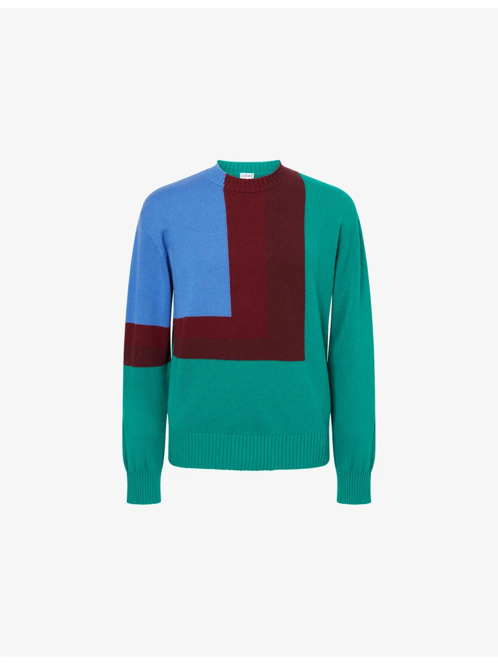 PRODUCT DETAILS - Loewe wool sweater - 100% wool - Crewneck, long sleeves, colour block design, embroidered logo at back, ribbed trims - Dry clean - Made in Italy - Model is 6ft 2in/1.88m and wears a size medium - Lightweight, slight stretch Ref: R04522408