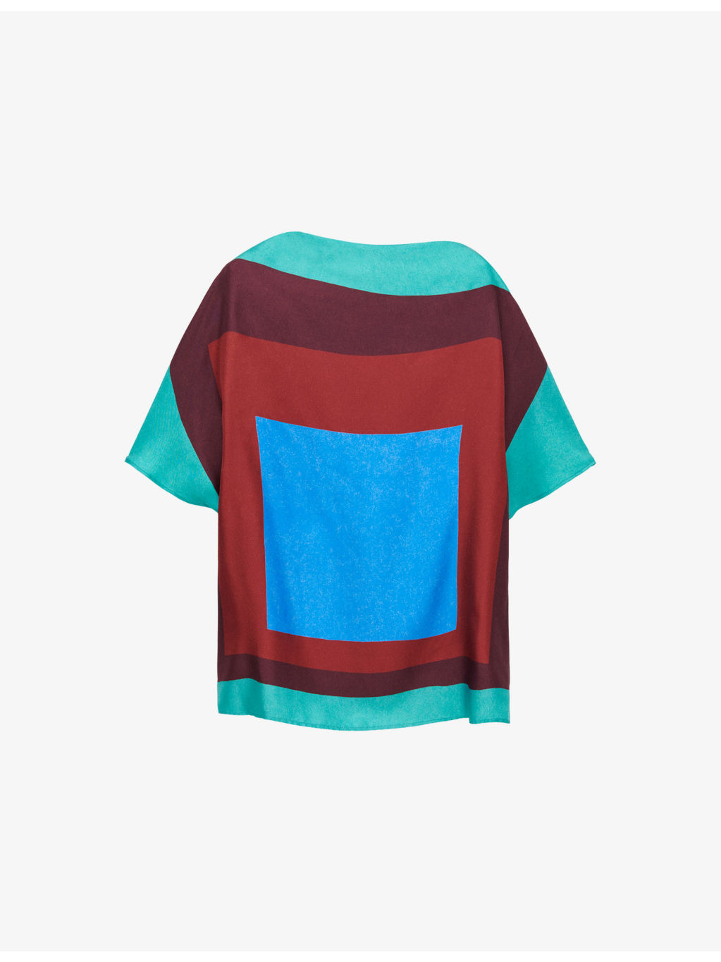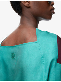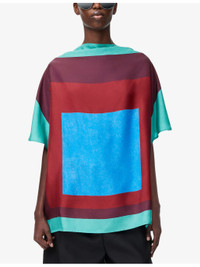 PRODUCT DETAILS - Loewe silk top - 100% silk - Relaxed fit, boat neckline, short sleeves, colour block pattern - Dry clean - True to size - Model is 5ft 10in/1.78m and wears a size UK 8 - Lightweight, non-stretch Ref: R04526075