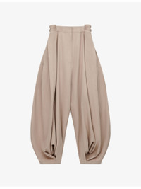 PRODUCT DETAILS - Loewe cotton-blend trousers - 90% cotton, 10% silk - Button, hook-and-eye and zip-fly fastening - Regular fit, mid-rise, wide leg, structured waistband, slip pockets at front, draped design - Dry clean only - True to size - Lightweight, non-stretch Ref: R04526027