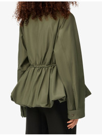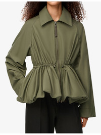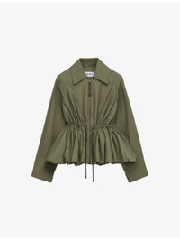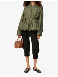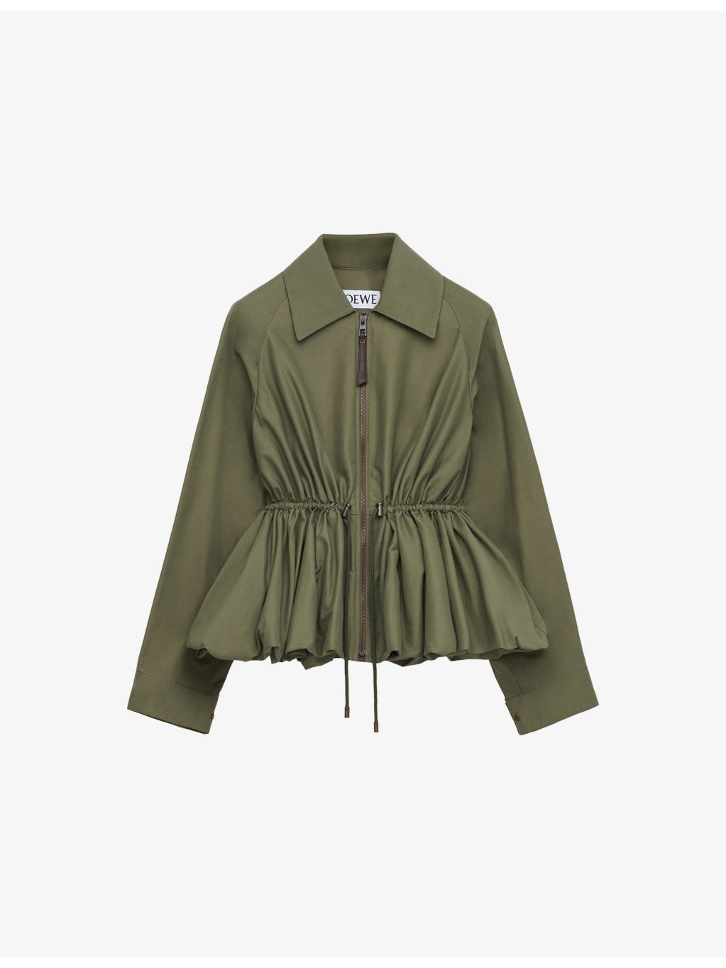 PRODUCT DETAILS - Loewe cotton-blend jacket - 50% cotton, 30% leather, 20% polyamide - Zip fastening - Classic collar, long sleeves, drawstring waist, flared hem, lined, leather branded patch at back neck - Dry clean - True to size - Midweight, non-stretch Ref: R04493160