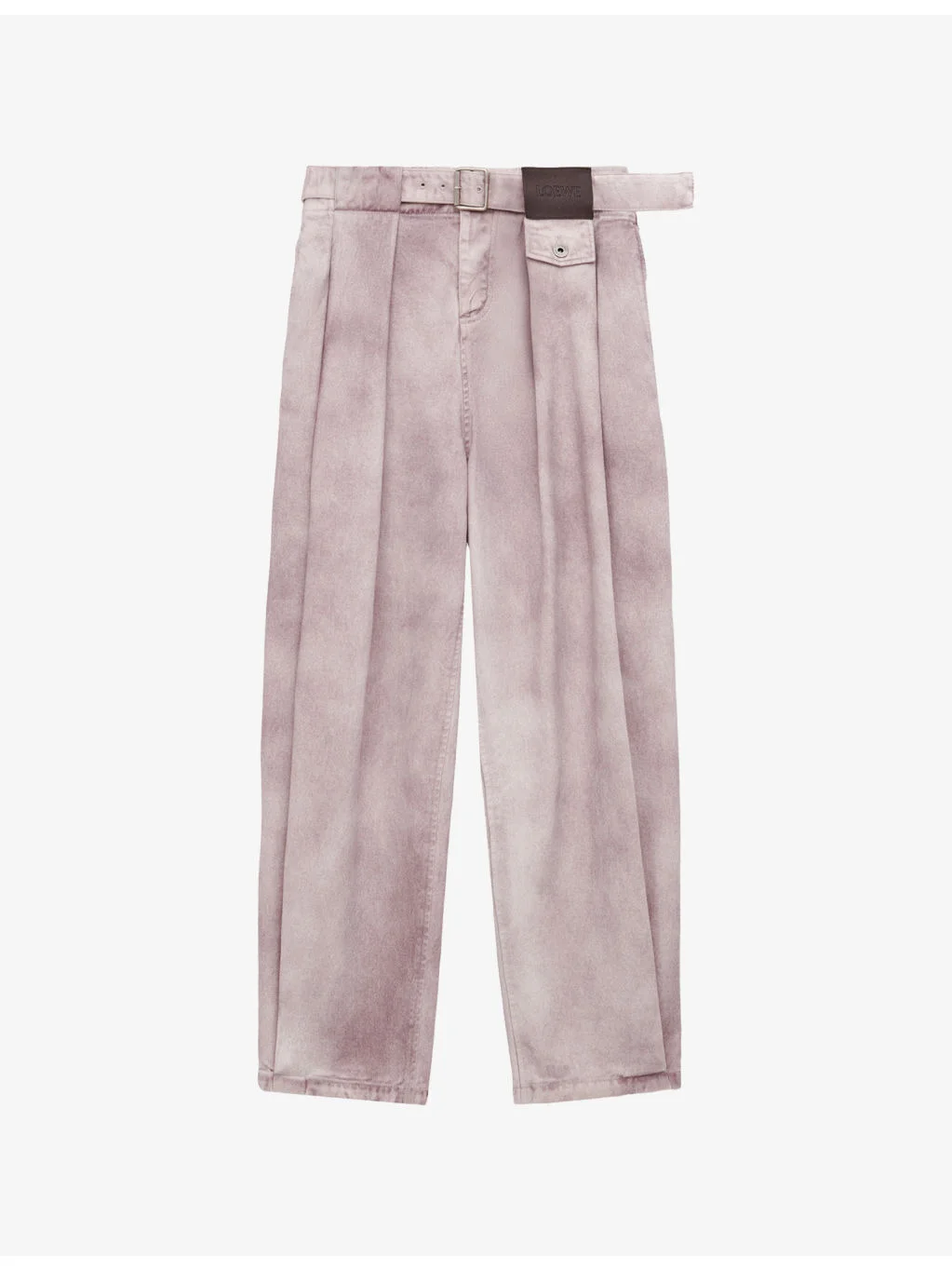 PRODUCT DETAILS - Loewe denim jeans - 95% cotton, 5% calf leather - Adjustable buckle fastening - Wide leg, adjustable/removable belt, brand patch at front, pleated detailing, faded wash - Specialist leather clean - Made in Italy - True to size - Lightweight, non-stretch Ref: R04566999