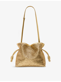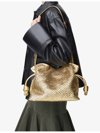 PRODUCT DETAILS - Loewe leather clutch bag - 100% leather - Magnetic fastening - Detachable and adjustable leather shoulder strap, all-over metallic detail, horizontal weave, drawstring pulls, coiled knots, one main internal compartment, suede lining - Height 24.5cm, length 30cm, depth 10.5cm - Specialist leather clean - Made in Spain - Comes with a dust bag Ref: R04410088