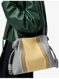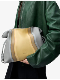 PRODUCT DETAILS - Loewe leather clutch bag - 100% leather - Drawstring-top closure - Soft shape, detachable strap, foil-embossed logo at front, colour block stripe pattern, one main compartment - Height 24.5cm, width 30cm, depth 10.5cm, strap drop 38-44 cm - Specialist leather clean - Made in Spain Ref: R04489869