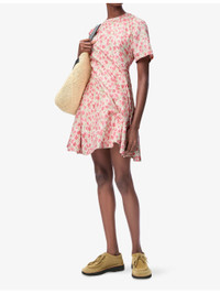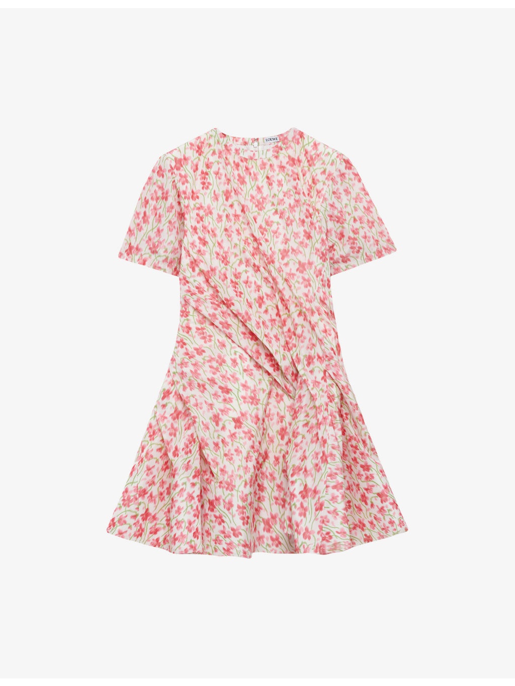 PRODUCT DETAILS - Loewe woven mini dress - 67% polyester, 33% silk - Regular fit, round neck, short sleeves, floral print, twisted construction - Dry clean - True to size - Model is 5ft 10in/1.78m and wears a size UK 8 - Lightweight, non-stretch Ref: R04493243