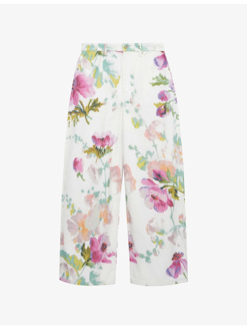 PRODUCT DETAILS - Loewe denim jeans - 100% cotton - Concealed zip fastening - Regular fit, mid rise, wide leg, five pockets, logo embossed leather patch at back, all-over floral digital print - Dry clean - True to size - Midweight, non-stretch Ref: R04493202