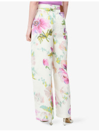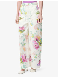 Floral-Print Wide-Leg Mid-Rise Denim Jeans