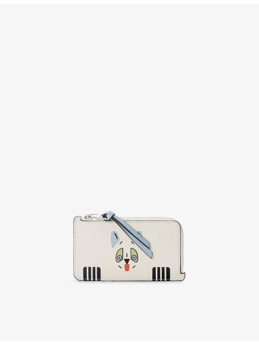 PRODUCT DETAILS - LOEWE leather coin card holder - 100% leather - Zip fastening - Rectangle shape, leather marquetry Futurist Cat, embossed branding, four card slots, one coin compartment - Height 7.5cm, width 13cm, depth 1cm - Specialist leather clean - Made in Spain Ref: R04567106