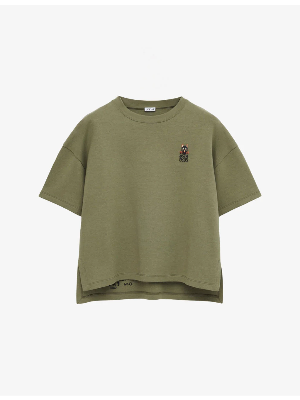 PRODUCT DETAILS - Loewe cotton-blend T-shirt - 77% cotton, 18% polyamide, 5% polyester - Regular fit, round-neck, short sleeves, branded Futuristic Cat embroidery to chest - Dry clean - True to size - Lightweight, slight stretch Ref: R04567038