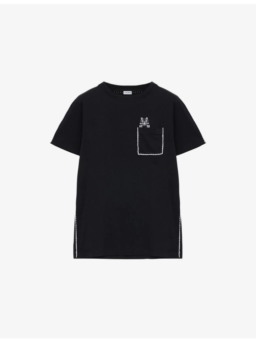 PRODUCT DETAILS - Loewe cotton-blend T-shirt - 95% cotton, 5% polyester - Regular fit, round-neck, short sleeves, chest pocket, Futuristic Cat print, contrast trim - Dry clean - True to size - Lightweight, slight stretch Ref: R04567040