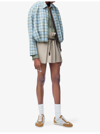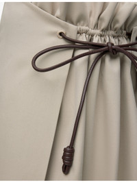 PRODUCT DETAILS - Loewe cotton-silk woven mini skirt - 90% cotton, 10% silk; belt 100% leather - Regular fit, mid-rise, structured waistband, contrast self-tie belt, gathered at front, twill woven texture - Dry clean only - Made in Italy - True to size - Model is 5ft 10in/1.78m and wears a size UK 8 - Lightweight, non-stretch Ref: R04493227
