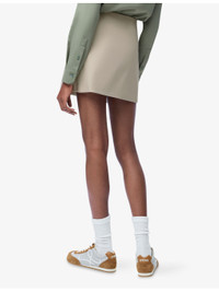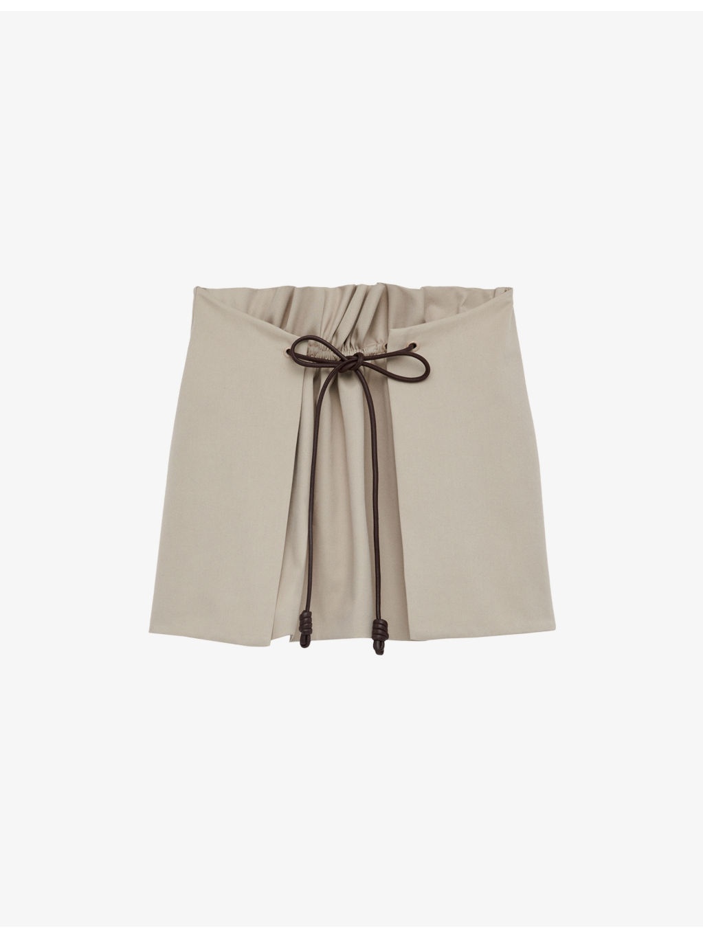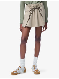 Gathered Tie-Belt Cotton-Silk Woven Mini Skirt