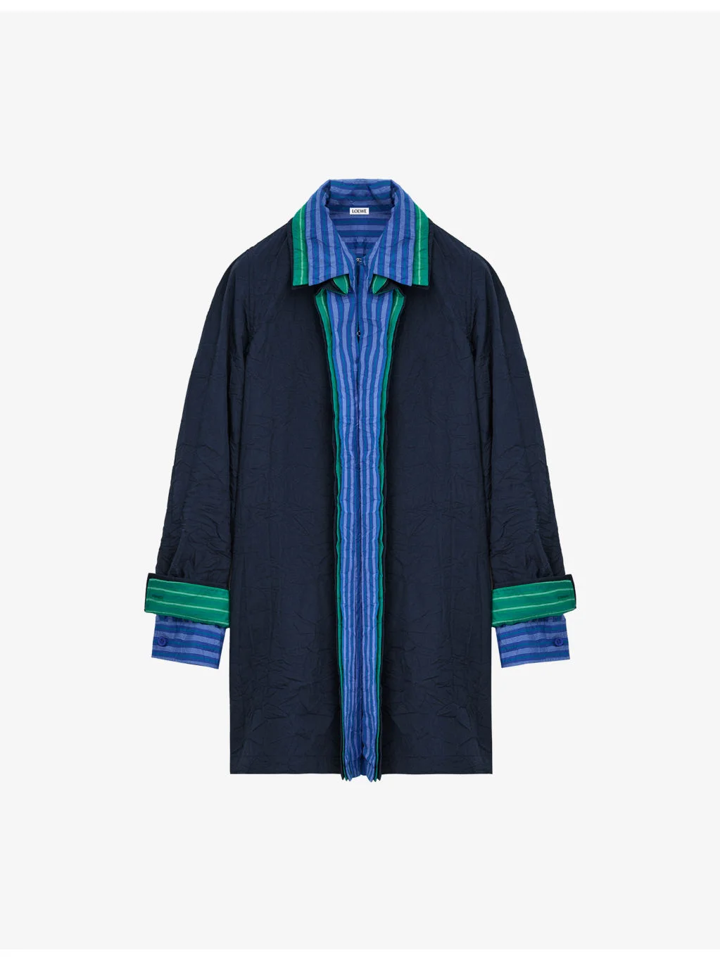 PRODUCT DETAILS - LOEWE cotton-blend mini dress - 51.41% cotton, 48.59% polyester - Concealed hook-and-eye fastenings at front - Relaxed fit, layered collar, long sleeves, layered cuffs, contrasting striped layers, creased texture - Dry clean only - Made in Italy - True to size - Lightweight, non-stretch Ref: R04616389